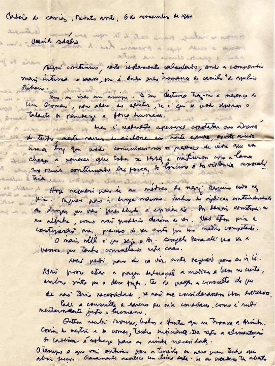 10 e 11 - Carta de Arlindo Vicente a sua esposa, quando se encontrava nas masmorras da PIDE, em Caxias, em 06-11-1961. Na segunda página pode ler-se uma curiosa referência a pessoas e costumes do Troviscal, sua aldeia Natal. TEXTO