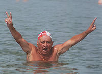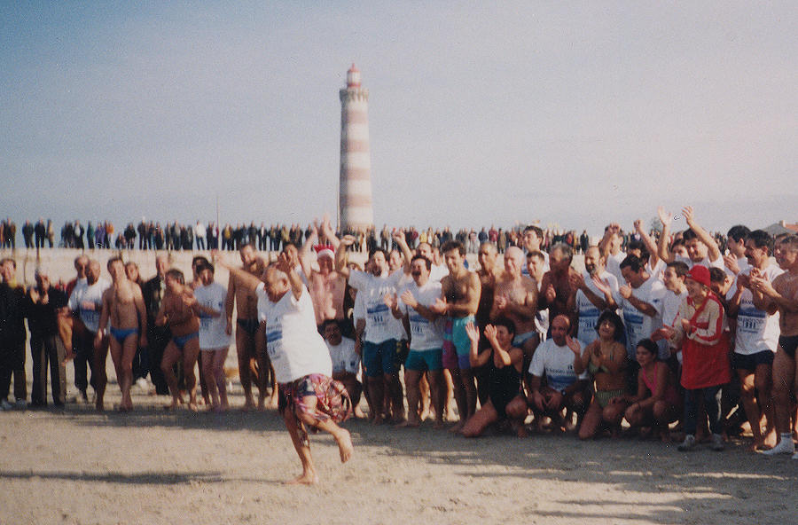 2 e 3. O Atita de Pai Natal em 1 de Janeiro de 2002 na praia da Barra.