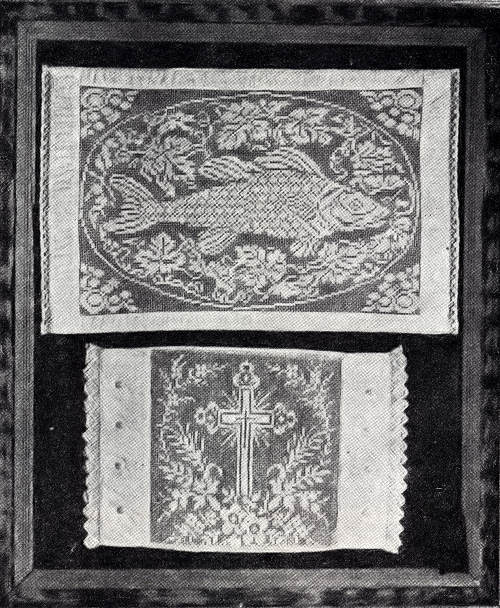 de casa havia a grande toalha de mesa, com desenhos levantados,