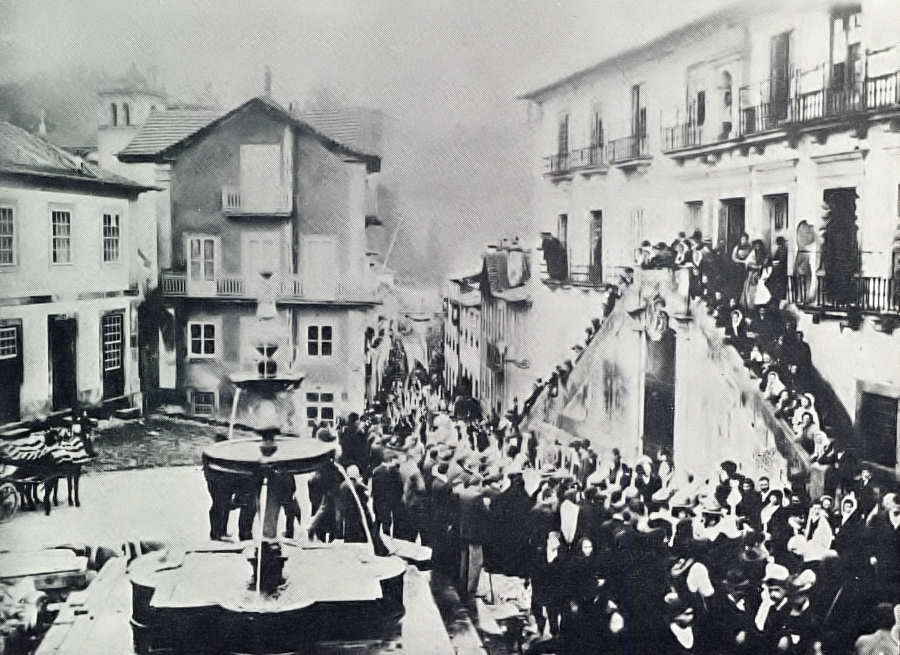 perpendicular à entrada dos Paços do Concelho em direcção à casa que