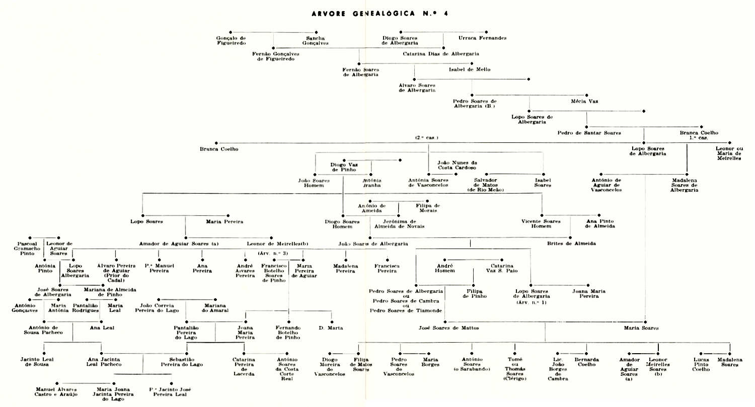 Pedro Soares de Albergaria (viveu no reinado de D. João 2.º na Província / 64 / do Minho: por um instrumento de EI-Rey no anno de 1493 consta ser parente do conde de Arroyolos e Fid.º da Casa Real, com 4 mil reis de moradia, c. com Mecia Vaz) [ T. 27 – fl. 107 e 110 ]