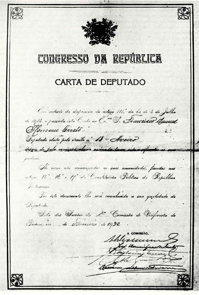 Um aspecto da sua vida pública, porventura o mais esporádico, tem sido omitido nas referências biográficas a Homem Cristo. Não lhe acrescenta a glória, mas não compromete o nome prestigioso de que deixou recordação imperecível. Queremos referir-nos à sua passagem, em duas legislaturas pelo Parlamento.