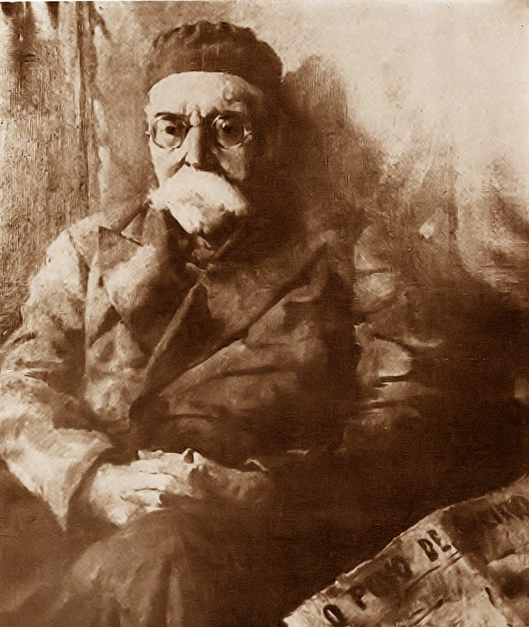 «...MÃOS FINAS, ARISTOCRÁTICAS, CRUZADAS, O INSEPARÁVEL GORRO PRETO A PROTEGER-LHE A CALVÍCIE, PERNA TRAÇADA, O CORPO INCLINADO PARA AS COSTAS DA CADEIRA, OLHAR AGUDO E PERSCRUTADOR –, ERA BEM ELE QUANDO EM BREVES PAUSAS DO SEU LABOR REPOUSAVA UNS MINUTOS MEDITANDO» – Carolina Homem Christo.