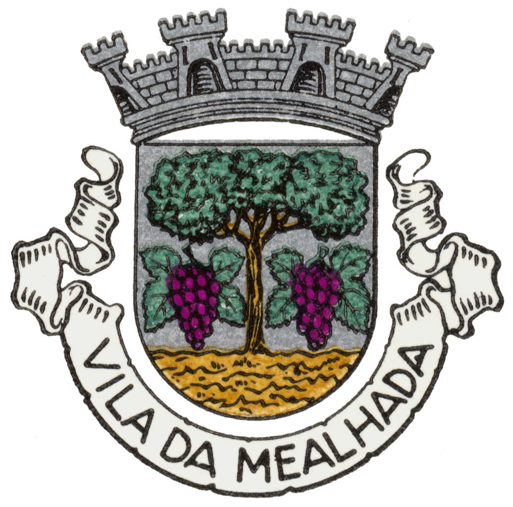 centro e por baixo um listel com a inscrição «Mealhada», de negro.