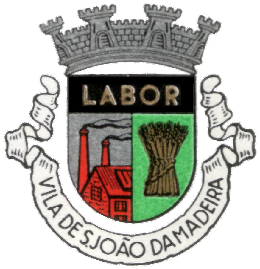 representa a indústria; na pala esquerda a paveia de trigo, emblema