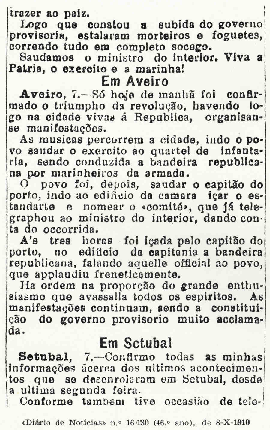 – N.º 16131, 46.º ano, de 9-10-1910.