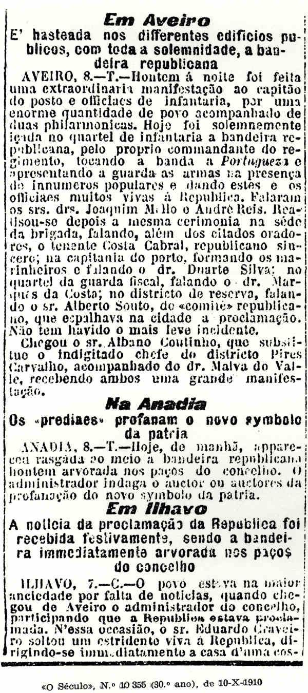 – O Século, n.º 10352, de 7-10-1910.