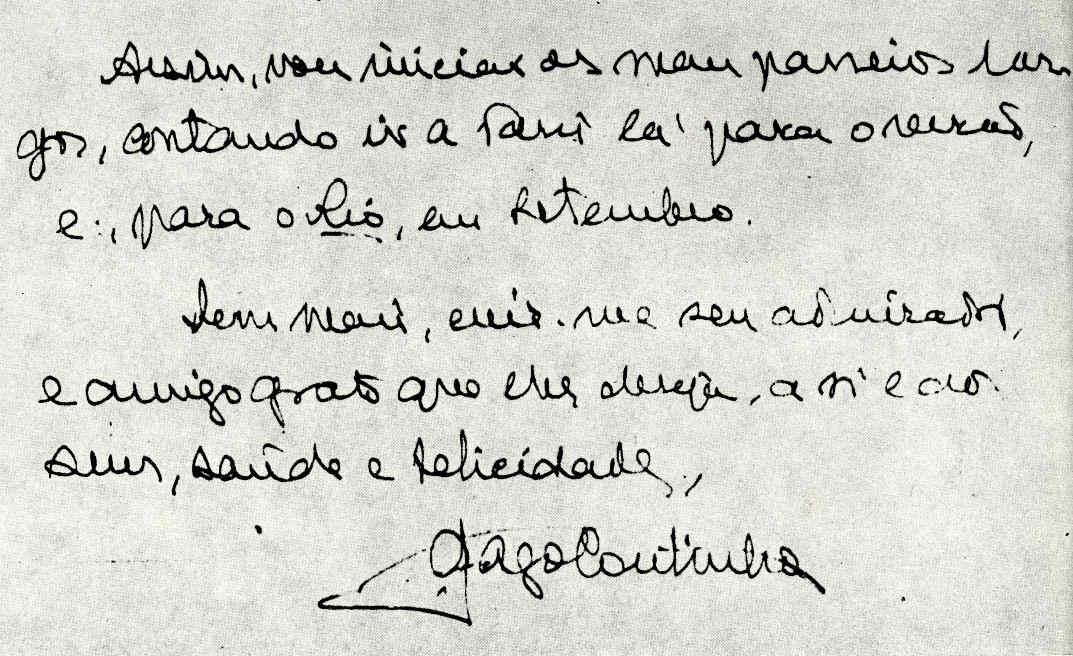 telefónicas e telegráficas, escreveu uma carta a Gago Coutinho,