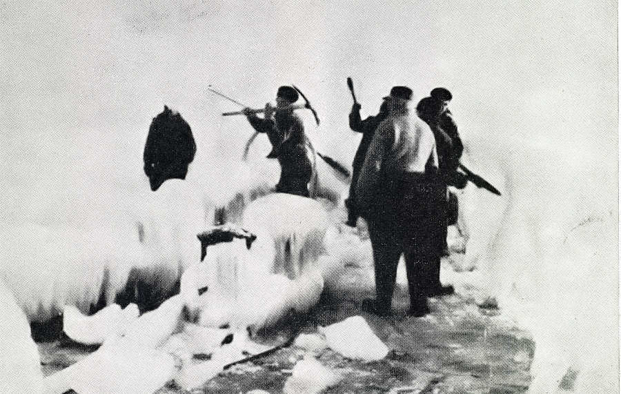 trajes característicos, visitaram o navio, trocando peles de foca,