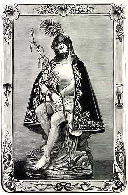 Na freguesia do Espírito Santo, a partir de Maio de 1730, a imagem que se incorporava nestas procissões fora doada por António da Silva Medela. O mesmo laborioso pesquisador do passado aveirense descreve-a como tendo três palmos e meio de altura, ornada com resplendor e coroa de prata e pregada numa cruz de pau, pintada de preto, com nove palmos de comprimento. Já então. há mais de meio século, lhe ignorava o paradeiro.