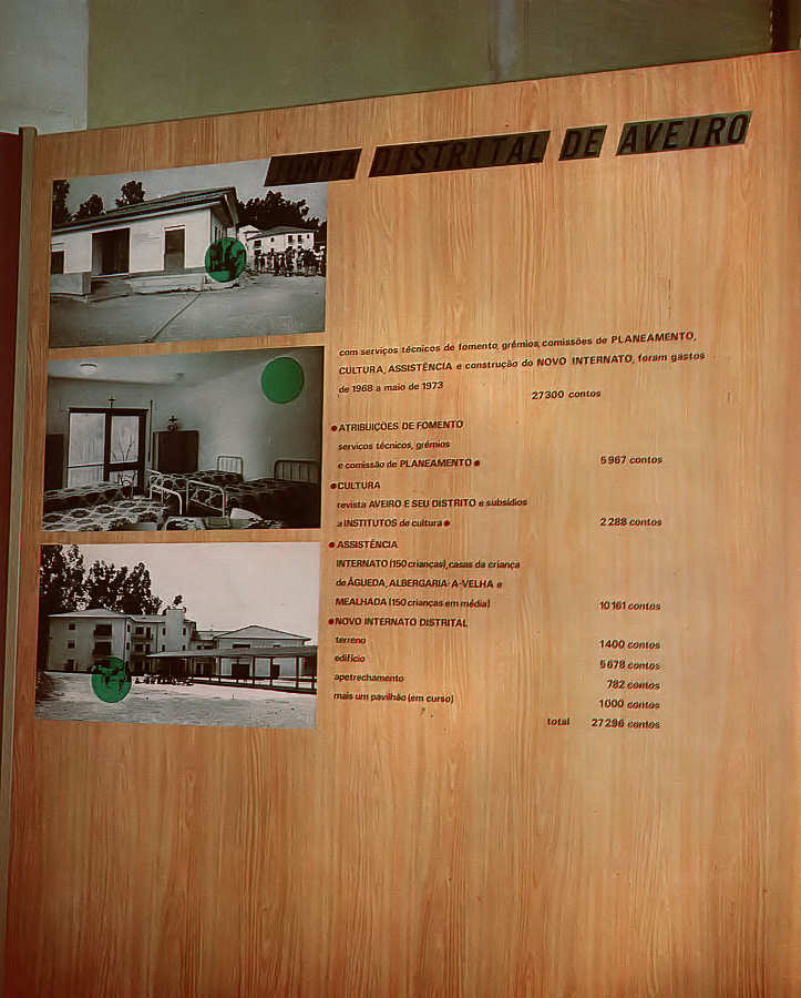 Painel da Junta Distrital na Exposição «Acção do Governo de Marcello Caetano no Distrito de Aveiro – Edifícios dos Estabelecimentos Assistenciais.