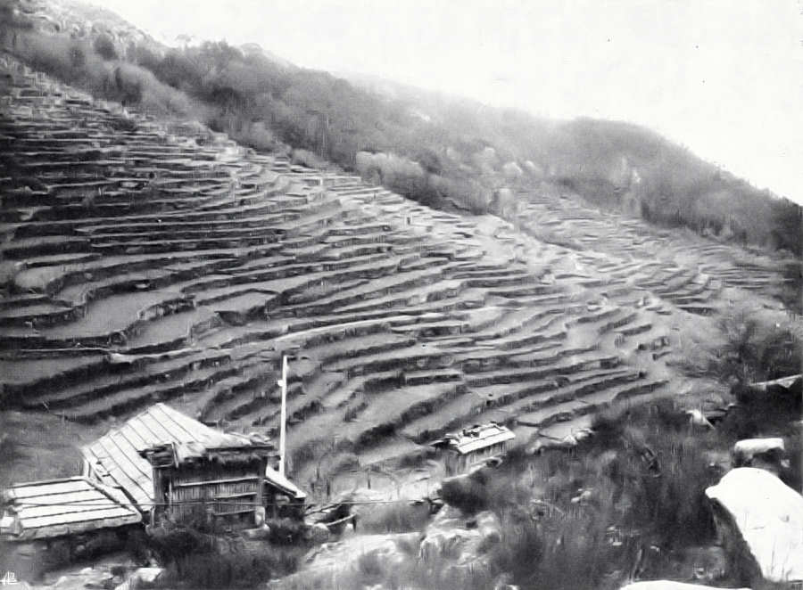socalcos, sustendo o solo arável e defendendo-o da erosão. (Vale de Cambra). |