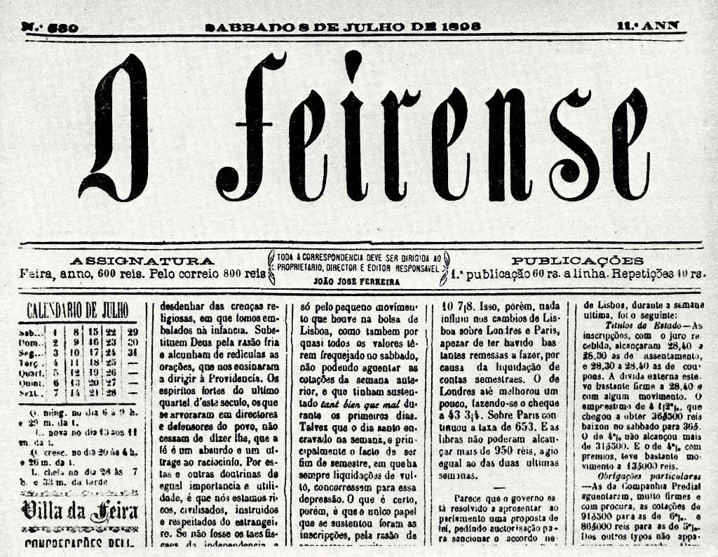 O Jornal da Feira, 1899 – ///////   Comércio da Feira, 1903 – ///////