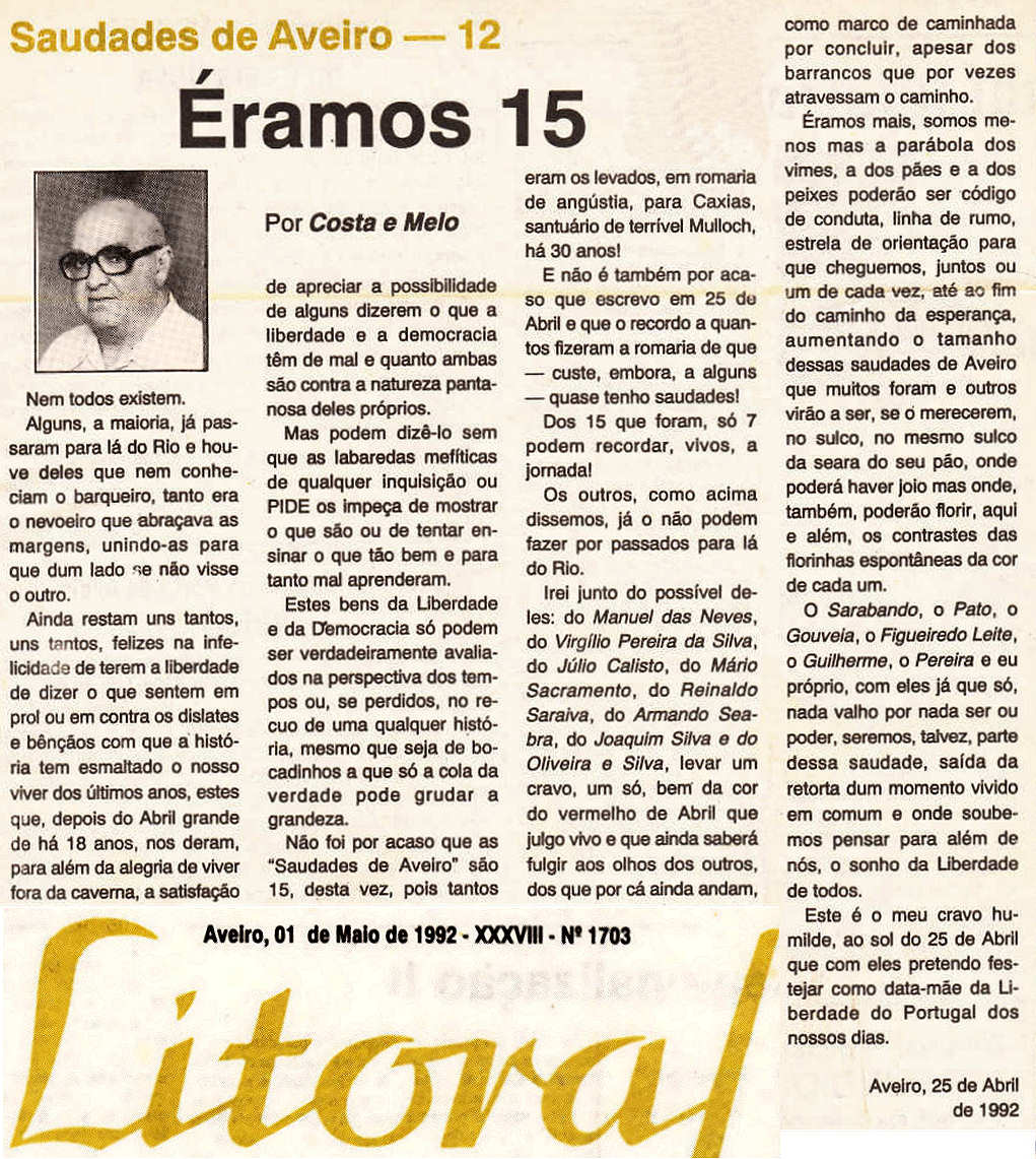 Éramos 15 - in "Litoral" n.º 1703 de 1 de Maio de 1992