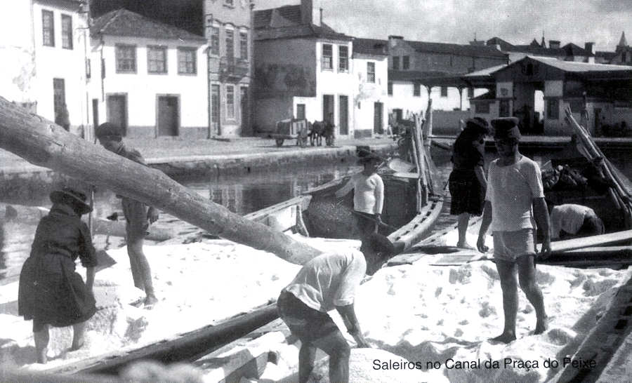 das cozinhas ou sal comum, obtido por evaporação da água da Ria, que