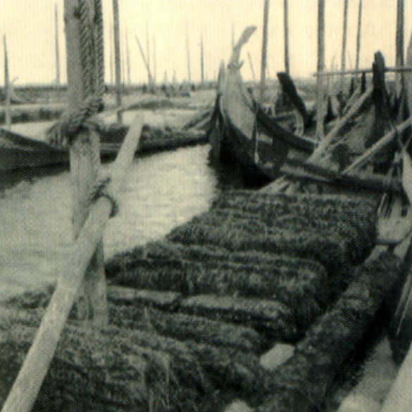 contígua o respectivo barco, colhem o moliço, juntam-no em laboiros,