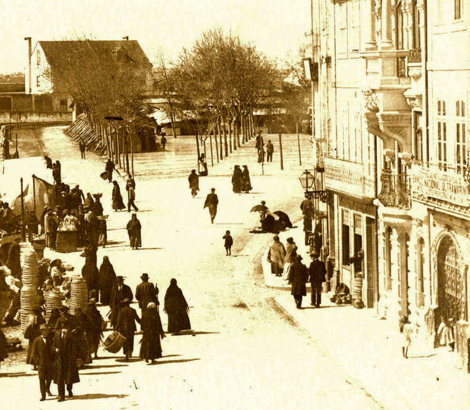 14, 15 - Guarde as duas metades da imagem em alta resolução, imprima-as a cores, junte-as e cole-as sobre uma cartolina. Obterá uma imagem de grandes dimensões que poderá emoldurar. Fotografia de 1902/03. Cfr. postal editado em 1903.