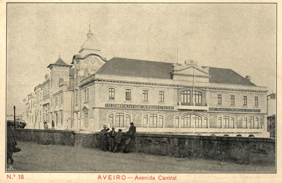Avenida Central, vendo-se o edifício da Companhia Aveirense de