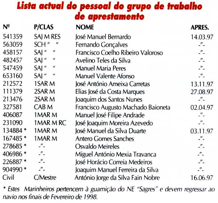 Arsenal do Alfeite. A partir de meados de Março de 1997, começaram-se a