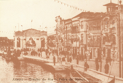 5. Aveiro. Trecho da Ria e pórtico de entrada da Feira de Março.   6. Aveiro. Fontenário e Praça do Peixe por volta de 1910.