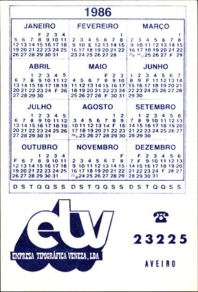 Aveiro antigo em calendários de 1986