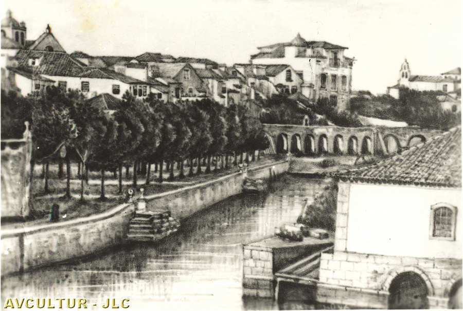 num desenho de 1891. Ao fundo o aqueduto. No canto inferior direito,