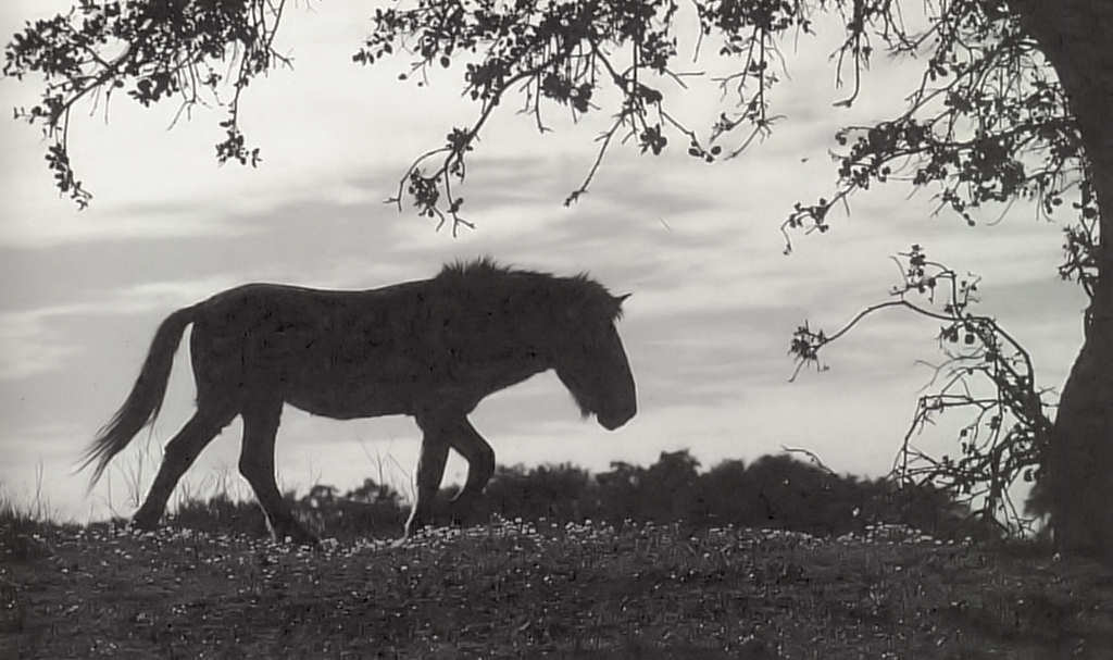 O garanhão sorve sofregamente o ar. Tenta detectar os aromas que lhe chegam às narinas e relincha de preocupação ao ver os vultos humanos que caminham na sua direcção. É um cavalo de 'prezwalski' – a mesma raça que sobreviveu no deserto de Gobi, na Mongólia, até 1969. O animal raspa as patas no chão, inquieto. Mas a terra que lhe salta dos cascos não é areia do deserto asiático. É pó do montado alentejano. Temendo uma ameaça desconhecida, o cavalo galopa em direcção às três éguas e aos dois potros que constituem o seu harém e obriga a manada a correr à sua frente. Quando se sente em segurança, para lá da linha de água, pára e olha desafiadoramente para os estranhos.