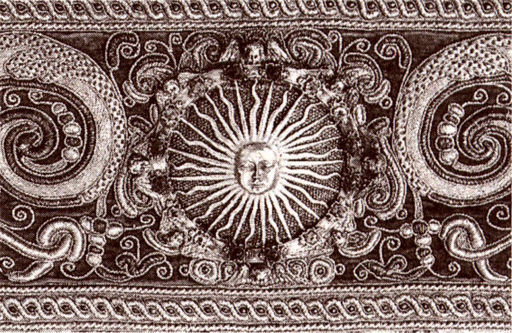 Por último destacamos o frontal identificado na frontaleira pela inscrição "JHS"(16), à qual foram associados os símbolos da Paixão.