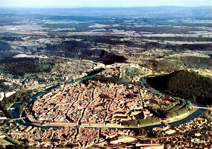 S/N - Besançon (Doubs) Vue aérienne - La boucle du Doubs - Edição Combier Imprimeur Mâcon 25.056 - CIM - Dimensões: 15x10,5 cm. - Col. HJCO (1979).