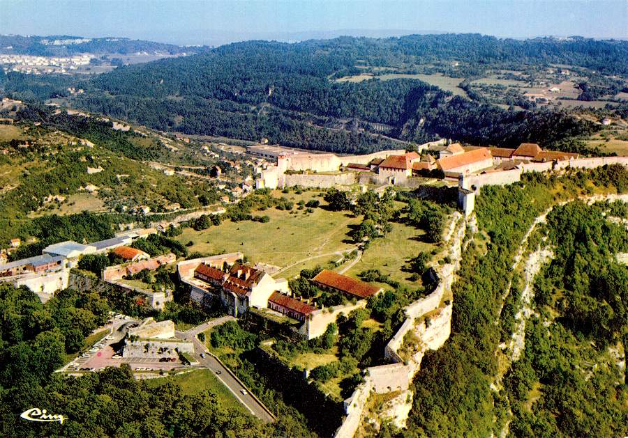 S/N - Besançon (Doubs) Vue aérienne - La Citadelle. Oeuvre de Vauban, ... (XVII e s.)... - Edição Combier Imprimeur Mâcon 25.056 - CIM - Dimensões: 15x10,5 cm. - Col. HJCO (1979).
