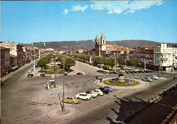 77. Nº 33. Braga. Praça da República. Arcada e Fonte Luminosa. Av. Central, Fonte Luminosa e Igreja dos Congregados. Ed. Francisco Más, Amadora. SD. Dim. 105x149 mm. Col. E. Semedo