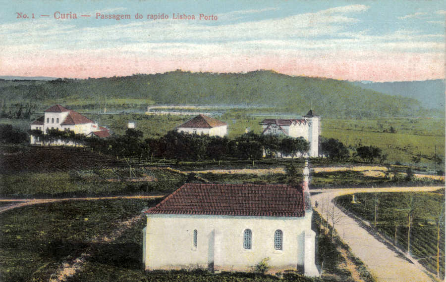 Nº 01 - Curia - Passagem do rápido Lisboa-Porto - S. Edit. - Dim. 13,8x8,8 cm - Circ. 1922 - Col. A. Simões (308).