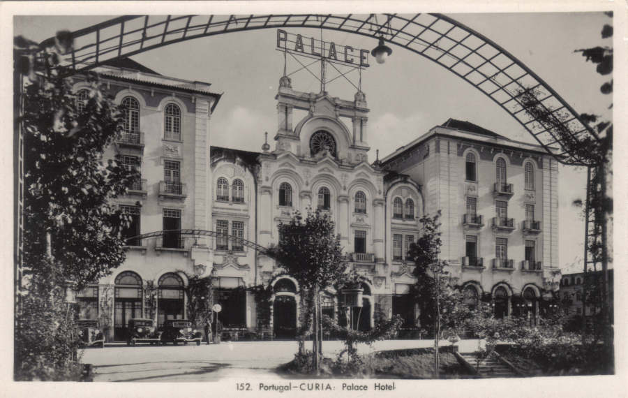 Nº 153 - Portugal - CURIA. Entrada do Palace Hotel - Ed. Alexandre d'Almeida, Lisboa - Dim. 14.2x9,0 cm - Colec. A. Simões (351).