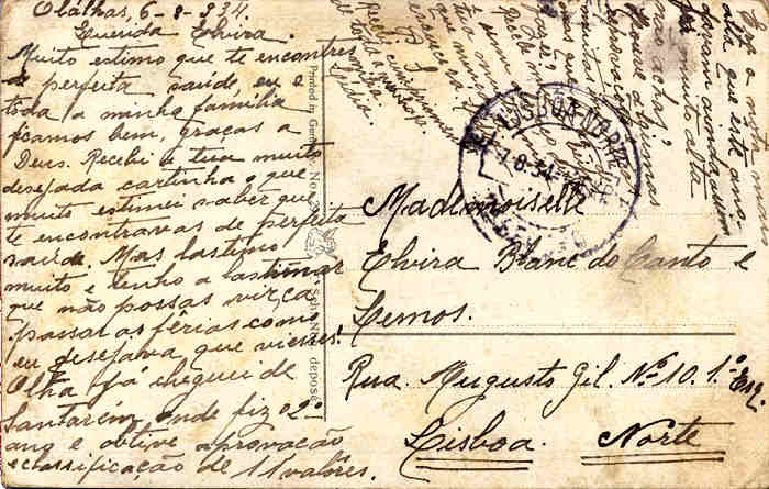 Nossa Srª dos Desamparados (circulado em 1934) (verso) |