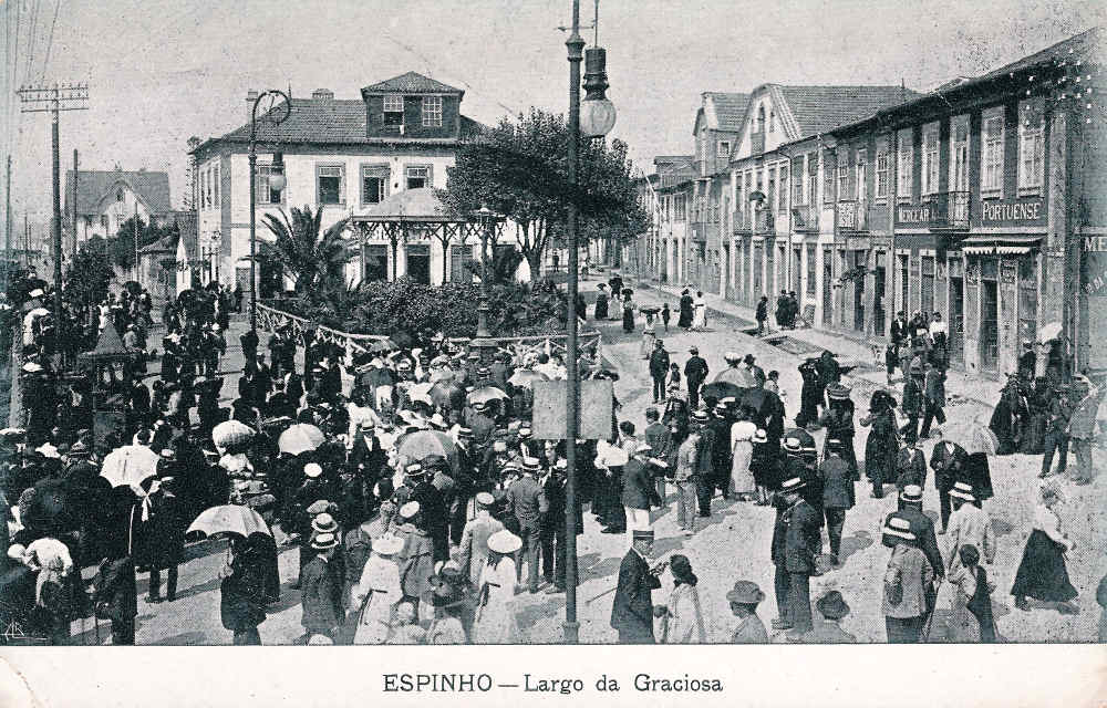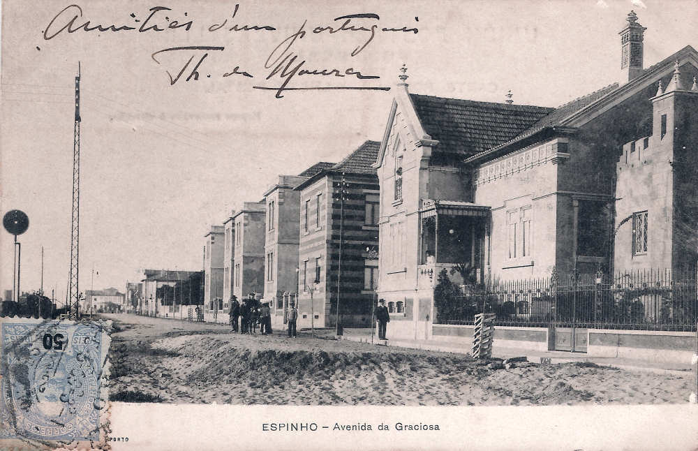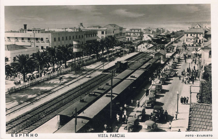 81. Vista parcial de Espinho a partir das janelas do cinema S. Pedro, vendo-se a estação tal como era na década de 1950.
