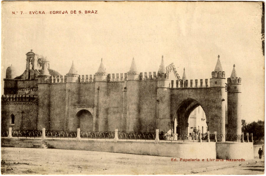 Nº 7 - EVORA-EGREJA DE S. BRAZ - Ed. Papelaria e Livraria Nazareth - SD - Fototipia Barreira & Costa-Porto - Dim. 9,5x14,3 cm - Col. Jaime da Silva (Circulado em 1923).