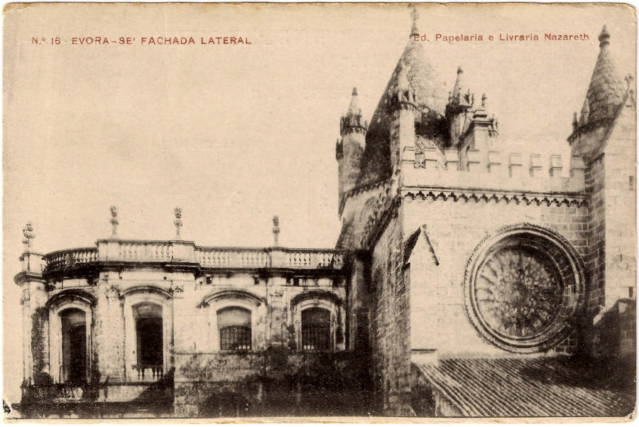 Nº 16 - EVORA-SÉ FACHADA LATERAL - Ed. Papelaria e Livraria Nazareth - SD - Fototipia Barreira & Costa-Porto - Dim. 9,5x14,3 cm - Col. Jaime da Silva (Circulado em 1923).