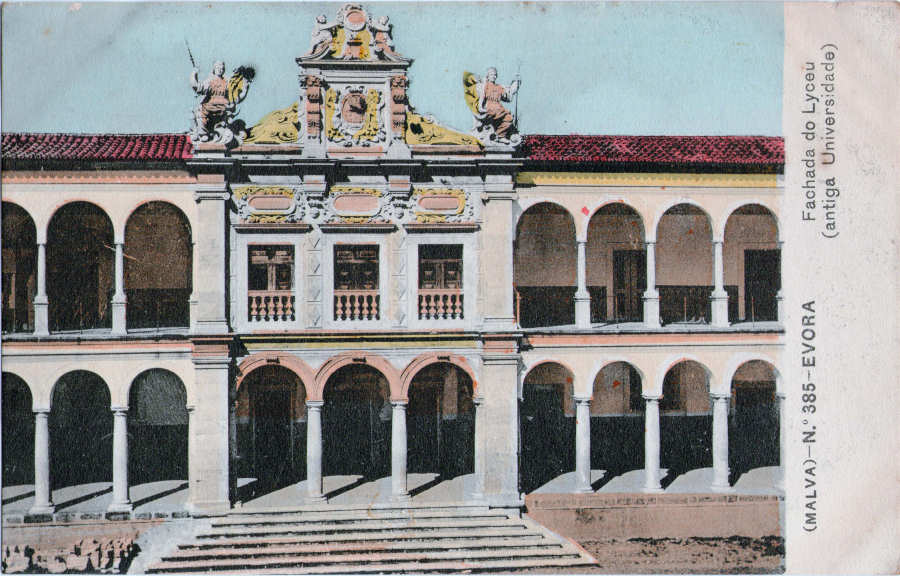 Nº 385 - Fachada do Lyceu (antiga universidade) - Edição Malva, Lisboa - Usado 02/10/1910 - Dim. 138x88 mm - Col. A. Monge da Silva (cerca de 1909)