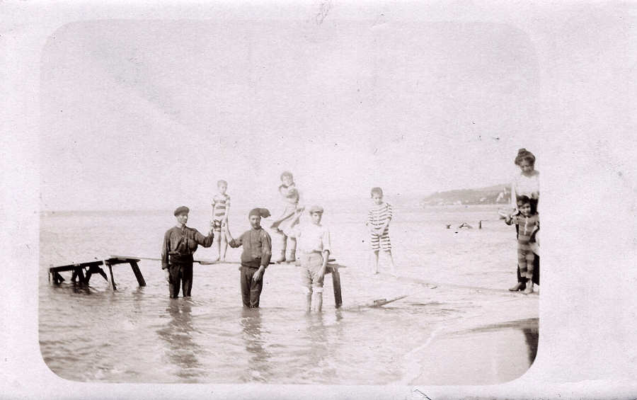 122. Casa Grandella, escadaria e grupo de amigos entre os quais o seu proprietário e irmão Luís e pessoas da família na janela manuelina.
