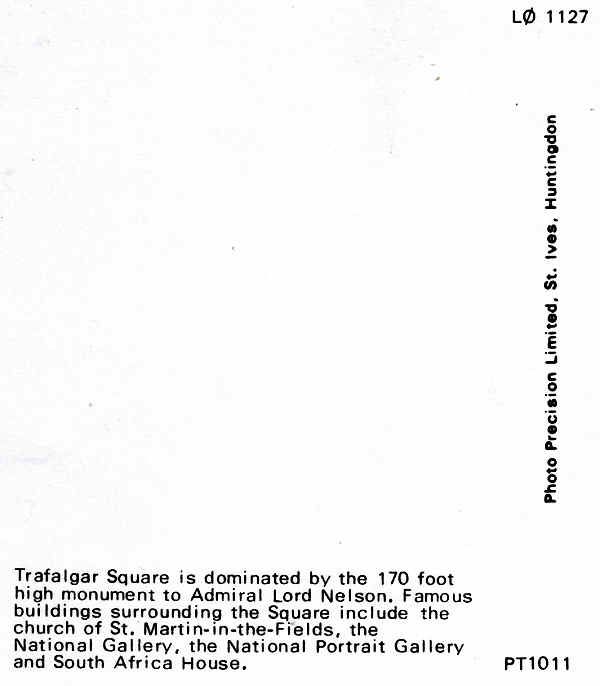 L0 1127 - LONDON - TRAFALGAR SQUARE - Ed. COLOURMASTER INTERNATIONAL Photo Precision Limited, St. Ives, Huntingdon Printed in Great Britain PT1011 - SD - Dim. 14,9x10,5 cm - Col. Manuel Bóia (1986)