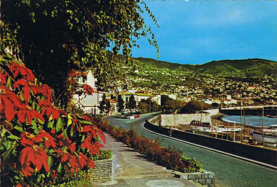 N.º MD 140 - FUNCHAL (Madeira) Vista parcial da cidade - Ed. Hans Huber KG Agente no Funchal: F. Ribeiro, Rua Nova de S. Pedro, 27, telef. 23930 - SD - Dim. 14,8x10,3 cm. - Col. Fátima e Manuel Bóia (1975).