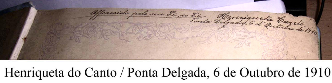 Creio serem dele os cerca de 200 postais da Ilha de S. Miguel de 1900 a 1910.  Não consigo compreender porque é que não há postais posteriores pois só foi viver para Lisboa em 1920, já viúvo e reformado.  Disse atrás que herdei duas, ou talvez três colecções, pois não tenho a certeza se estes postais eram mesmo dele ou de sua filha.
