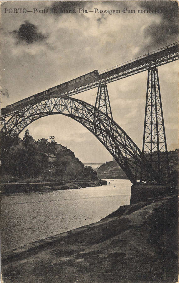 66 - PORTO - Ponte D. Maria Pia. Passa-gem dum comboio. (c. 1920)