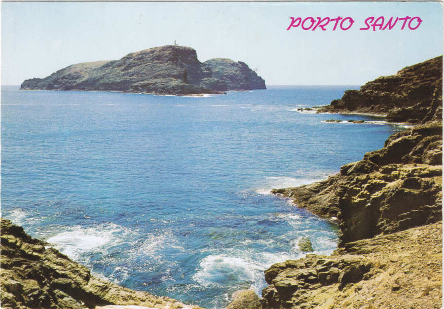 Nº 548 - PORTO SANTO Ilhéu de cima ou do Farol - Ed. BERNARDINO V.G. CARVÃO APARTAMENTOS PIORNAIS-BLOCO 9-3.ºA - FUNCHAL LITO OF. ARTISTAS REUNIDOS-PORTO - SD - Dim. 15x10,5 cm - Col. Manuel Bóia (1988).