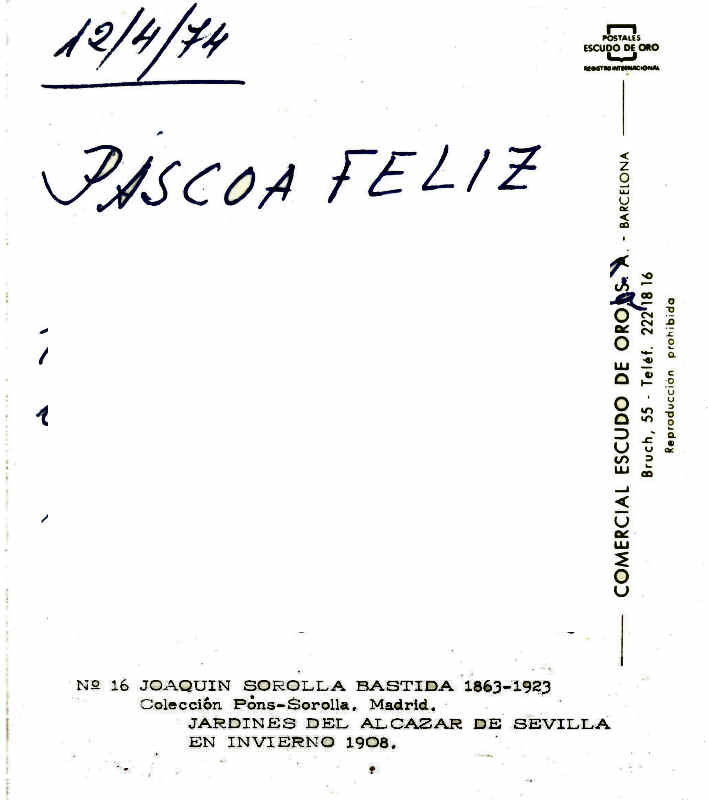 16 - Sevilha,Jardins do Alcazar, óleo de Joaquim - Ed. FISA - Dim