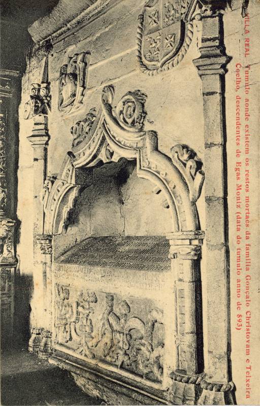 15 -«Túmulo aonde existem os restos mortaes da família Gonçalo Christovam e Teixeira Coelho, descendentes de Egas Moniz (data do tumulo anno de 893)»