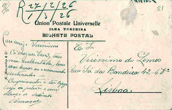 526. Cidade de Angra do Heroísmo circulado em 01 Out. 1914.