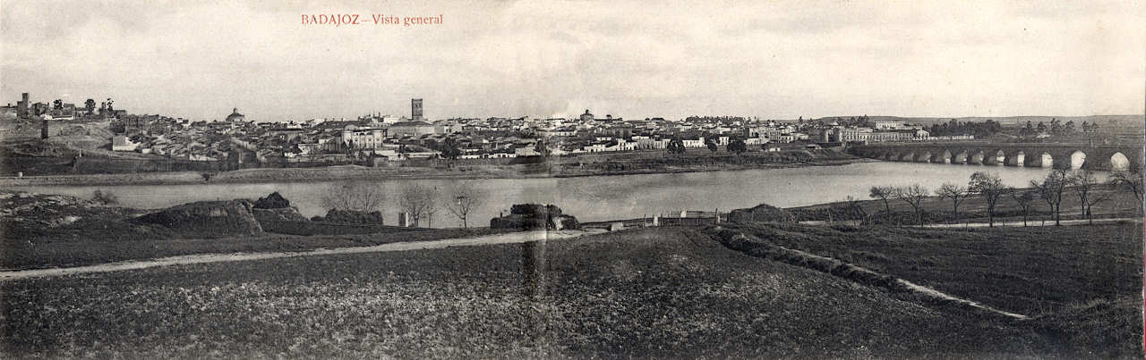Postal panorâmico de Badajoz de cerca de 1910. Versão em