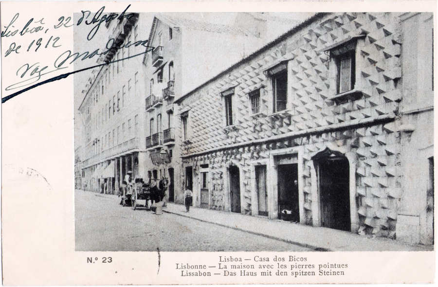 Nº 23 - Casa dos bicos - Edição dos correios - Dim. 140x91 mm - Usado em 22AGO1912 - Col. A. Monge da Silva (anterior a 1910)