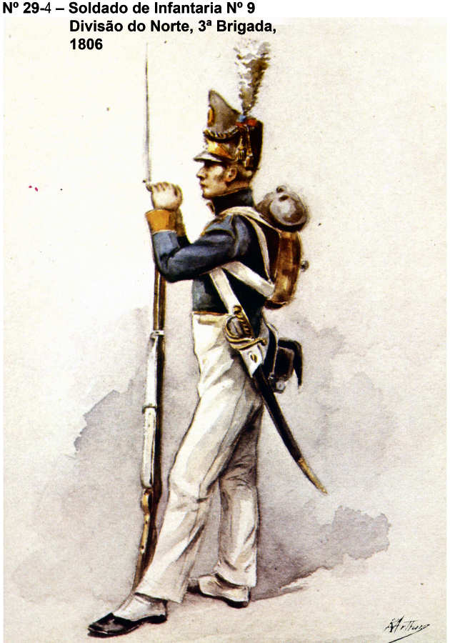 Soldado de Infantaria nº 9, Divisão do Norte, 3ª Brigada, 1806. |